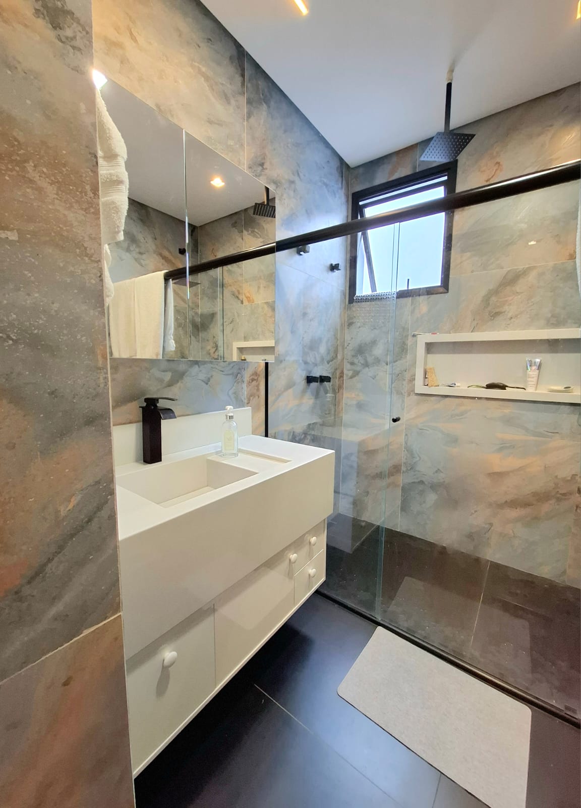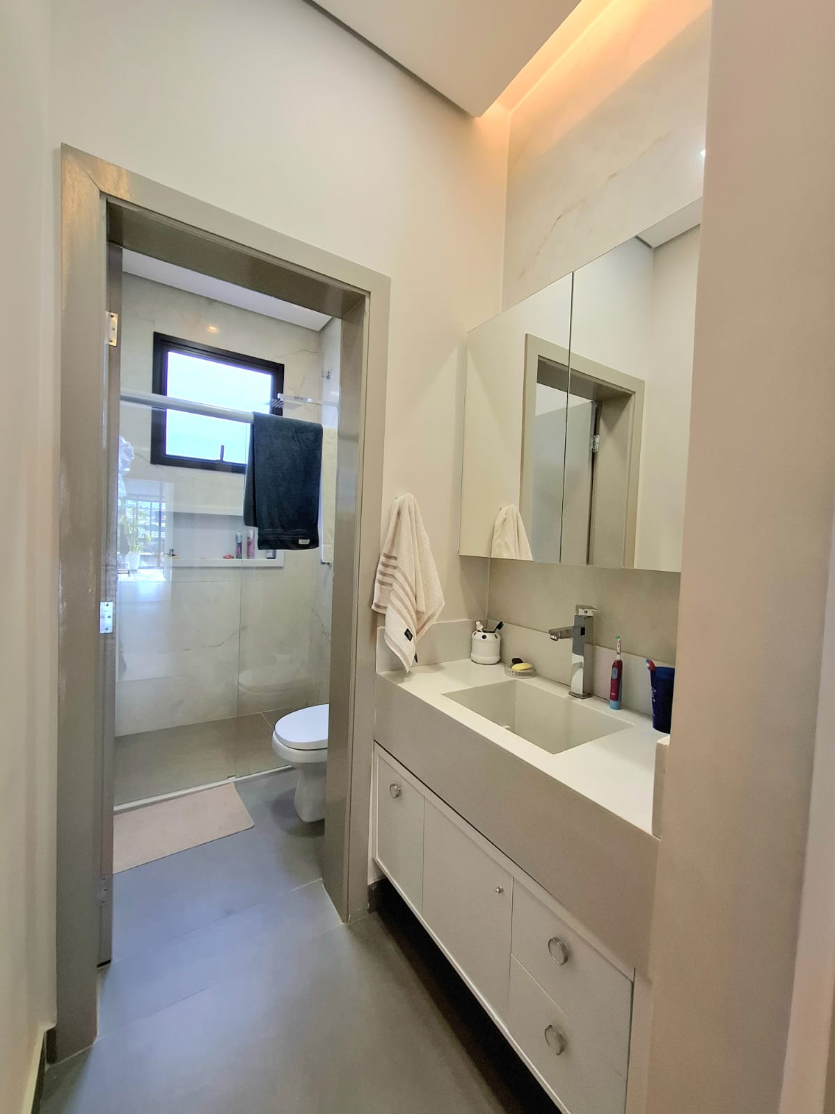 ✔️ Suíte máster com varanda, closet e dois chuveiros